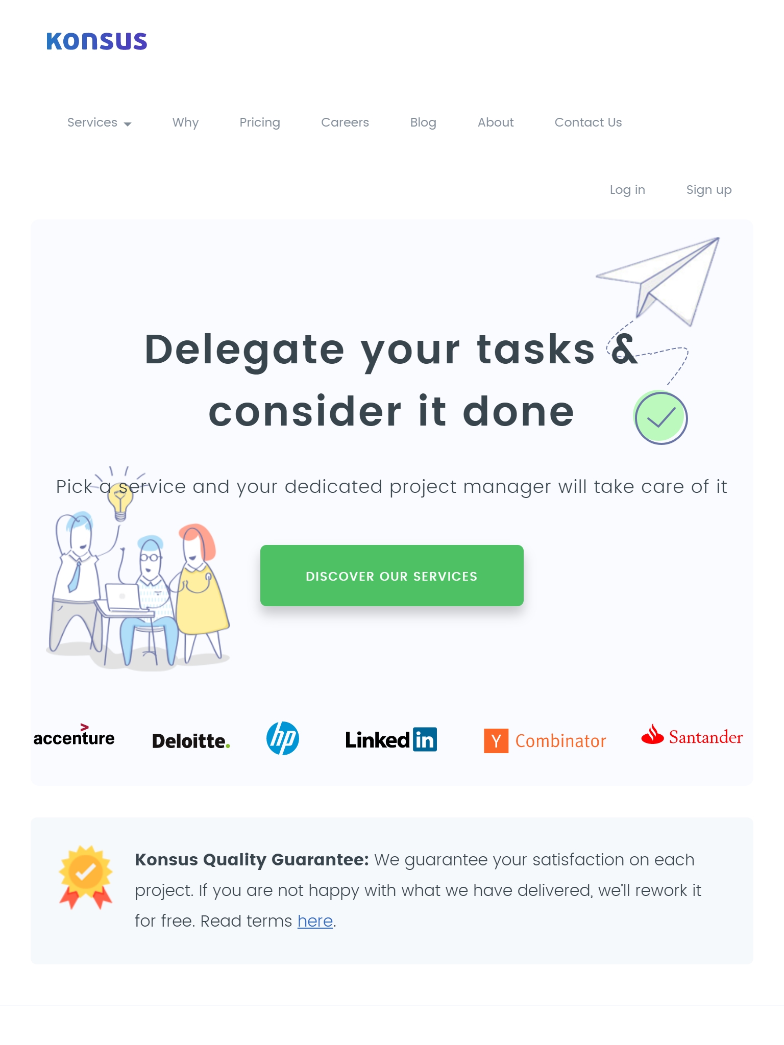 Konsus is the world's first On-Demand Freelance Business Support service, available 24/7 via chat. Konsus participated in the 2016 winter batch of Y Combinator and raised $1.5 million.