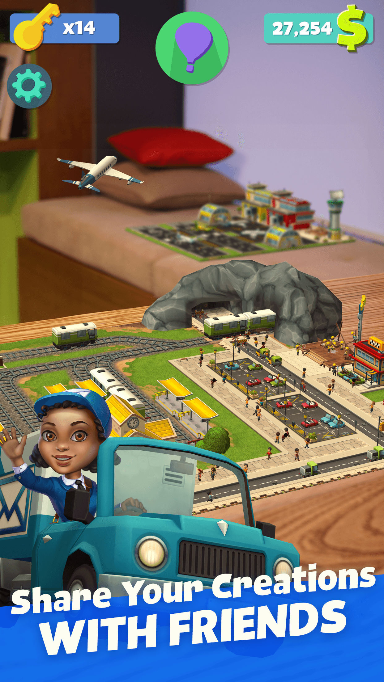 Welcome to the first game that lets you build your own country in augmented reality! Using the latest technologies, you can now bring entire worlds to life right in your living room. Discover miniature worlds full of cute little people; run an airport, manage a train station and see how tall you can build the forest of skyscrapers in your business district. Master an entire new dimension of fun – swoop and pan with your device to get a better perspective look for hidden items around your cities to avert mishaps.